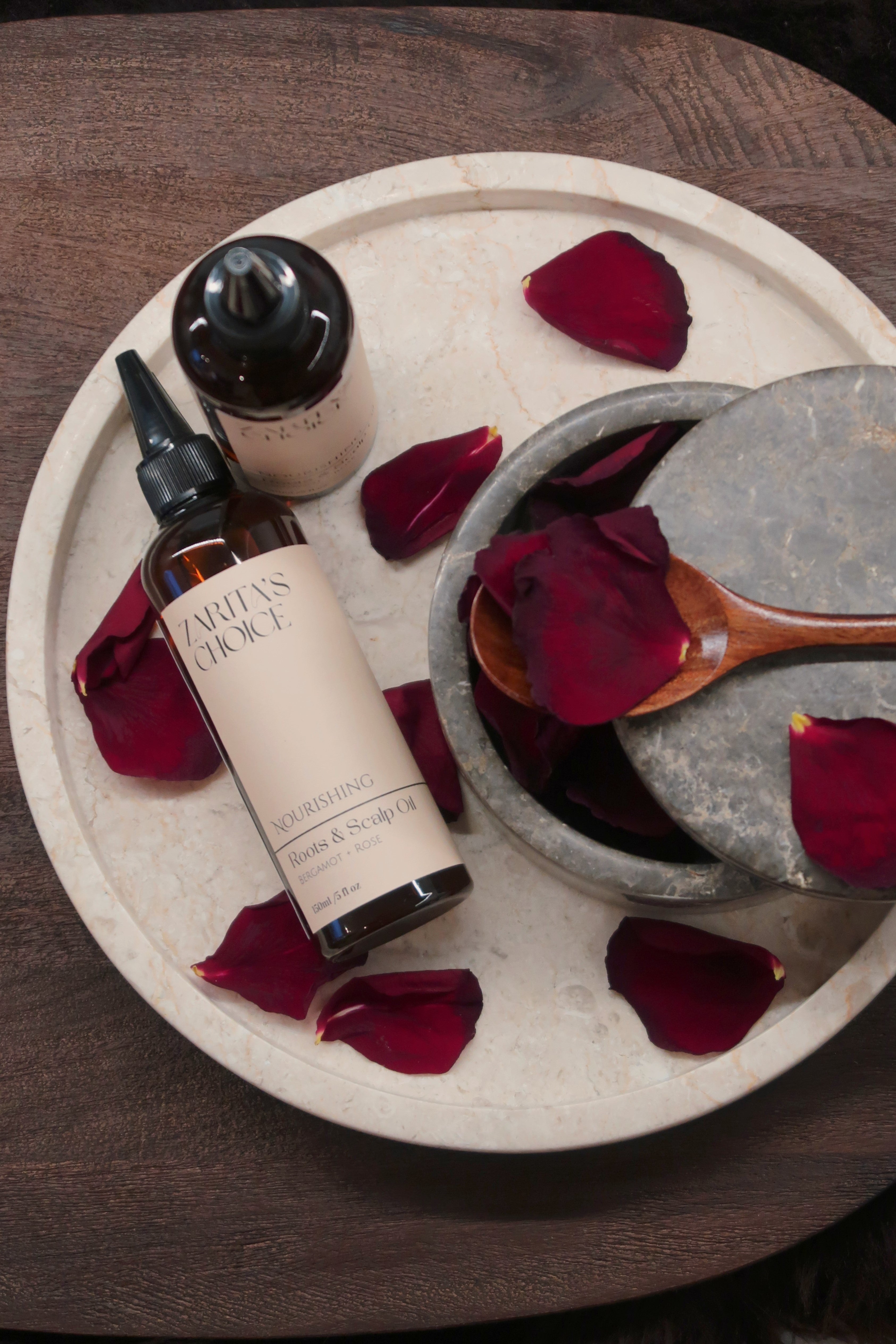 Packed with Vitamins A, C & E and fatty acids, Rose oil can provide many essential nutrients for healthy hair growth. Rose is an emollient, which means it can deeply moisturise hair, prevent breakage and improve smoothness and shine. Additionally, it can balance pH, soothe the scalp and reduce dandruff. Also, with its rich floral fragrance, it provides a luxurious sensory experience.